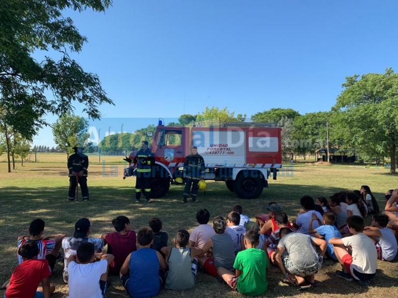 L@s niñ@s de nuestra Colonia de Vacaciones Municipal que se desarrolla en el predio del Club Atlético Rosario Central, recibieron la visita especial del cuartel de bomberos de Arroyo Seco.