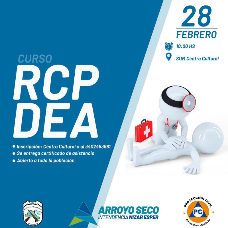 La dirección de Protección Civil municipal en conjunto con el cuerpo activo de Bomberos Voluntarios de Arroyo Seco, dictará un curso de Reanimación cardiopulmonar (RCP) y uso de Desfibrilador Externo Automático (DEA) abierto a toda la población.