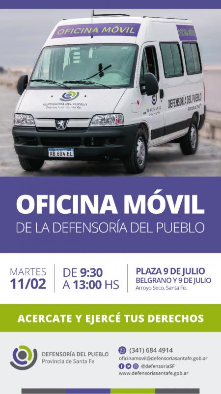 Desde las 09:30hs a las 13:00hs, la Oficina Móvil de la Defensoría del Pueblo perteneciente al Gobierno de Santa Fe estará apostada en las inmediaciones de la plaza "9 de julio" (Belgrano y 9 de julio) cumpliendo con un servicio importante para nuestr@s vecin@s a la hora de ejercer sus derechos y presentar sus diferentes inquietudes.