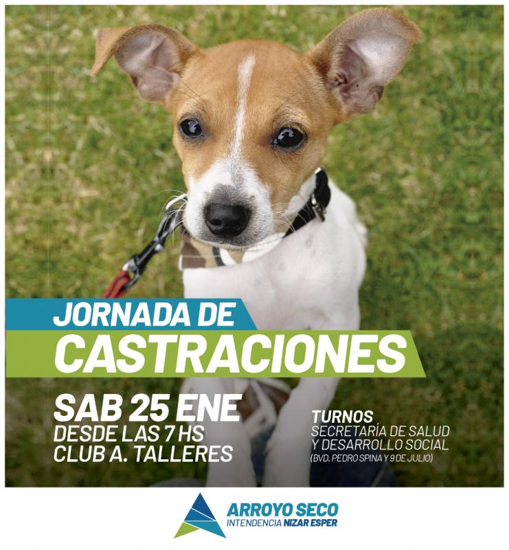 El próximo sábado 25 de enero, desde las 07:00hs en el Club Atletico Talleres, se realizará una nueva jornada de castraciones gratuitas para perros y gatos, enmarcando la primera campaña del año mediante un gran esfuerzo de nuestro Gobierno Municipal, la Secretaría de Salud y Desarrollo Social, en conjunto con la ONG protectora de animales “Bicheros de Arroyo Seco”.