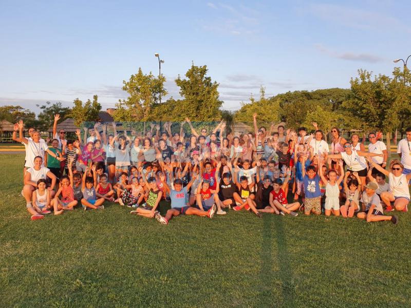 Los niños y niñas de la Colonia de Vacaciones Municipal disfrutaron ayer de una jornada "Pre Campamentil" junto a l@s profesor@s en el predio del club Rosario Central.