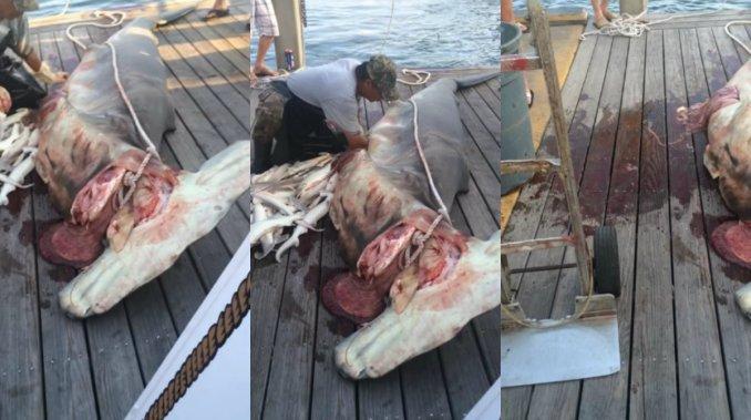 La especie se encuentra en peligro de extinción, pero el ejemplar fue atrapado a los efectos de sacarle las aletas, que son utilizadas como ingrediente culinario.